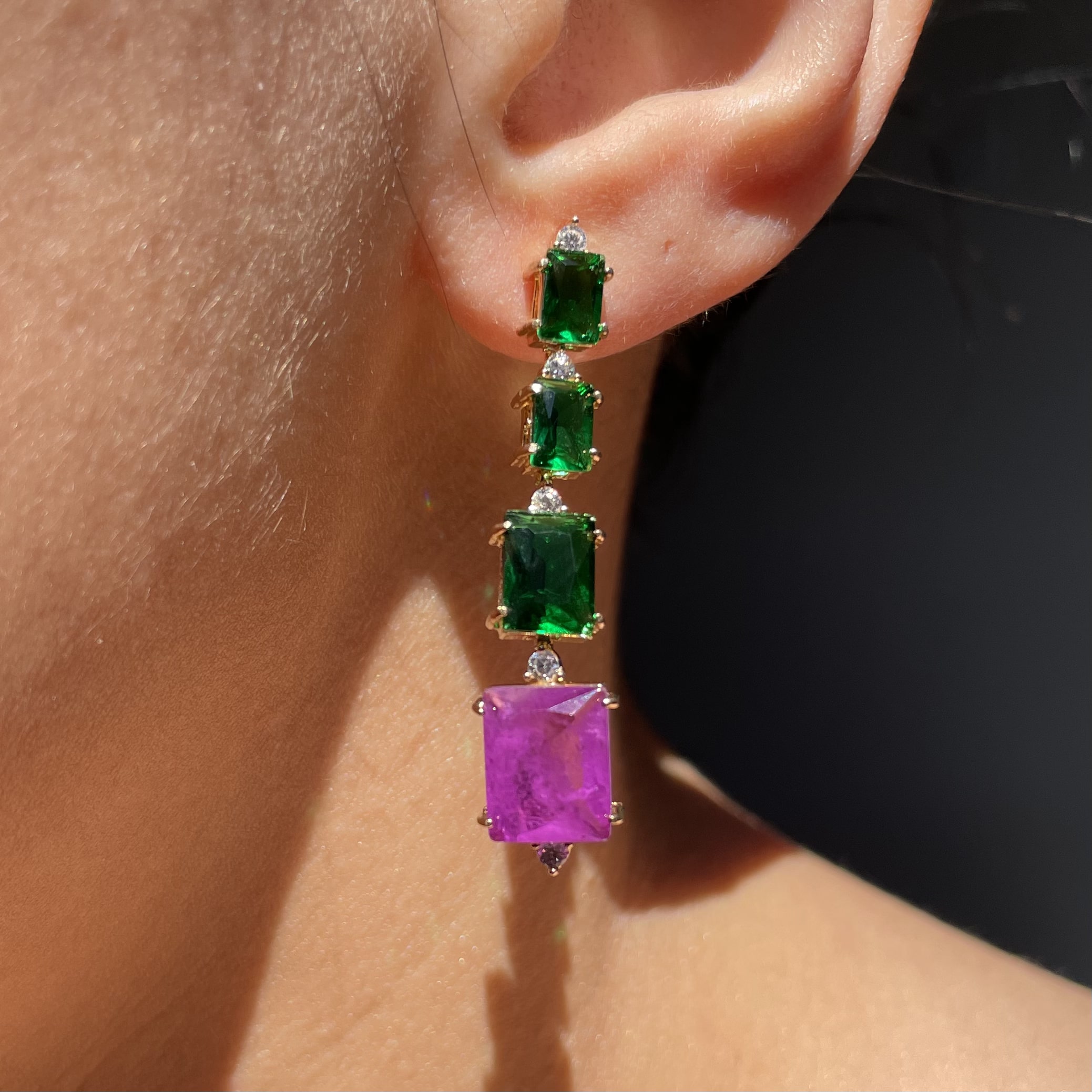 PEDRA: ZIRCÔNIA VERDE ESMERALDA E FUSION ULTRAVIOLET/ROXO ESCURO