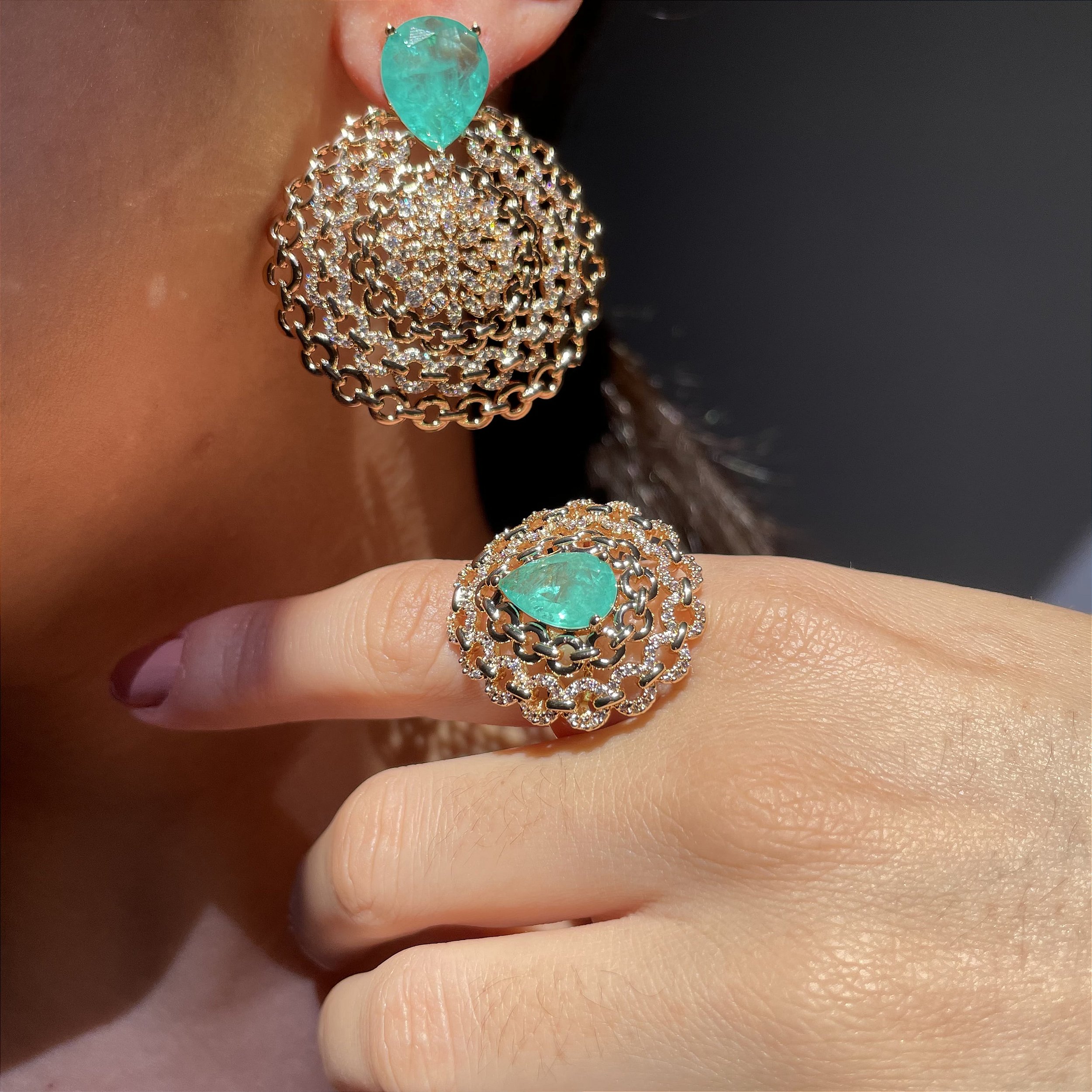 Fusion Premium Leonia Costa Semijoias: A pedra fusion se trata de uma pedra produzida em laboratório através da fusão de fragmentos da pedra natural com a zircônia que resulta em uma pedra com aparência mais próxima da gema natural, por esse motivo, cada pedra é única, apresentando inclusões na cor e ranhuras internas.