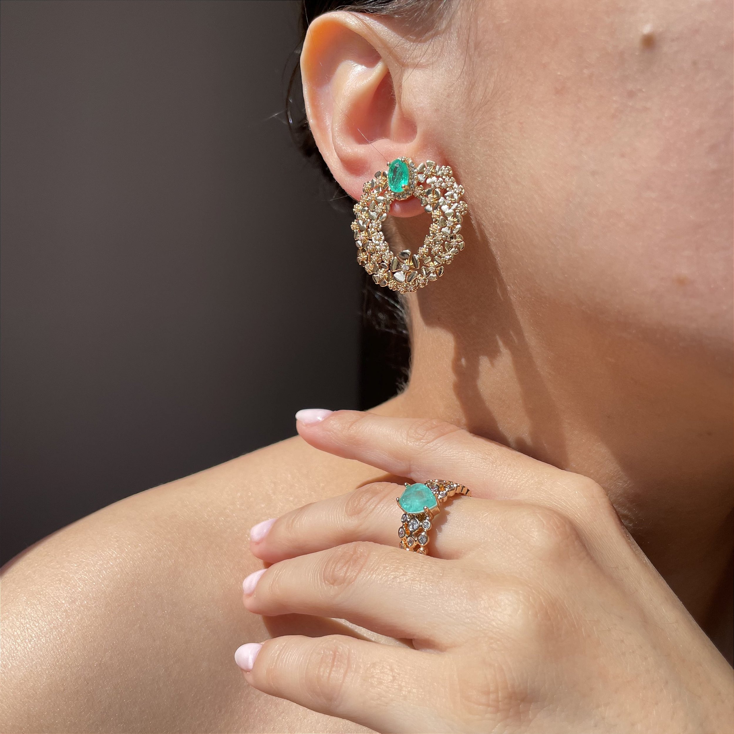 Fusion Premium Leonia Costa Semijoias: A pedra fusion se trata de uma pedra produzida em laboratório através da fusão de fragmentos da pedra natural com a zircônia que resulta em uma pedra com aparência mais próxima da gema natural, por esse motivo, cada pedra é única, apresentando inclusões na cor e ranhuras internas.